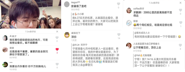 不仅如此,还有从美国、澳大利亚漂洋过海要专程看摩登兄弟的,并且日期都安排好了;还有网友准备在7月中旬和家人一起来看摩登兄弟。网友们还纷纷留言给摩登:“我要去丹东看你,千万别换地”“求翻牌!2000公里的距离都不觉得远”,还有远在海外的粉丝标出自己和摩登兄弟所在地的距离,表示很想回来见见摩登,满屏都是爱有木有。