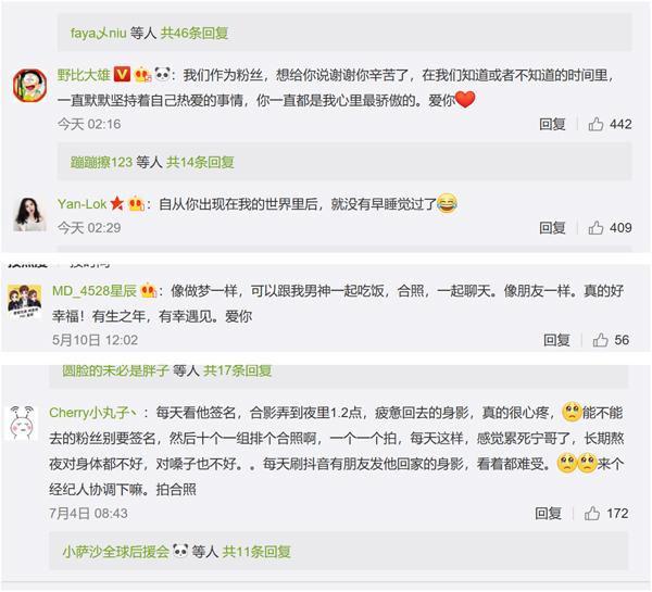 这样对粉丝热爱,让他们收获了粉丝们的追随和坚守。在他的微博上,可以看到很多有爱的留言:“看到你火了,真的好开心”,“感觉这么多年你们的努力没有白费”,还有粉丝直呼有种 “老母亲”的感觉,看到如今爆红的他们,“自己仿佛也获得了极大的满足感”。同时,面对摩登兄弟的“宠粉”和努力,网友们也纷纷表示“心疼”,希望更多人能够对他们多一些善待和理解,也希望他可以不那么累。