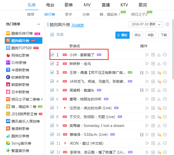 YY脱口秀主持人小洲(ID:6737)又推重磅新歌啦!作为YY最有音乐才华的脱口秀主播,小洲的歌几乎曲曲必火。7月9日,小洲新推一首名为《爱都爱了》的新歌,在全网迅速蹿红。这首歌主打正能量爱情观,推出一天,就跃升至酷狗飙升榜第一位,并排名酷狗网络新歌榜13位,当日评论量达到8400+,而QQ音乐评论量当日也达到了2000+。