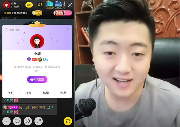 小洲,是YY直播平台上备受粉丝喜爱的知名脱口秀主播。早在2012年,小洲就曾尝试通过网络发布原创歌曲。2015年,小洲正式加入YY,成为一名唱歌+脱口秀风格的主播。一路走来,他凭借“洲式情歌”的深情唱腔和幽默的直播风格,得到大家的喜爱。