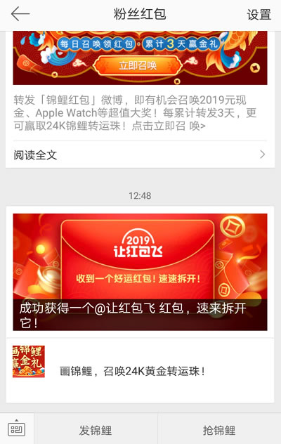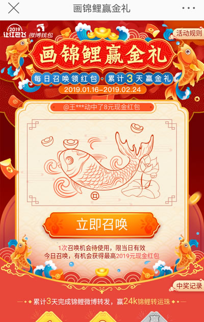 想要成为幸运的“锦鲤”的网友只需要关注张雨绮的微博,并转发这条锦鲤红包,就会在粉丝红包里面看到“让红包飞”发送的专属红包,还可以参与画锦鲤,召唤24K黄金转运珠哟!
